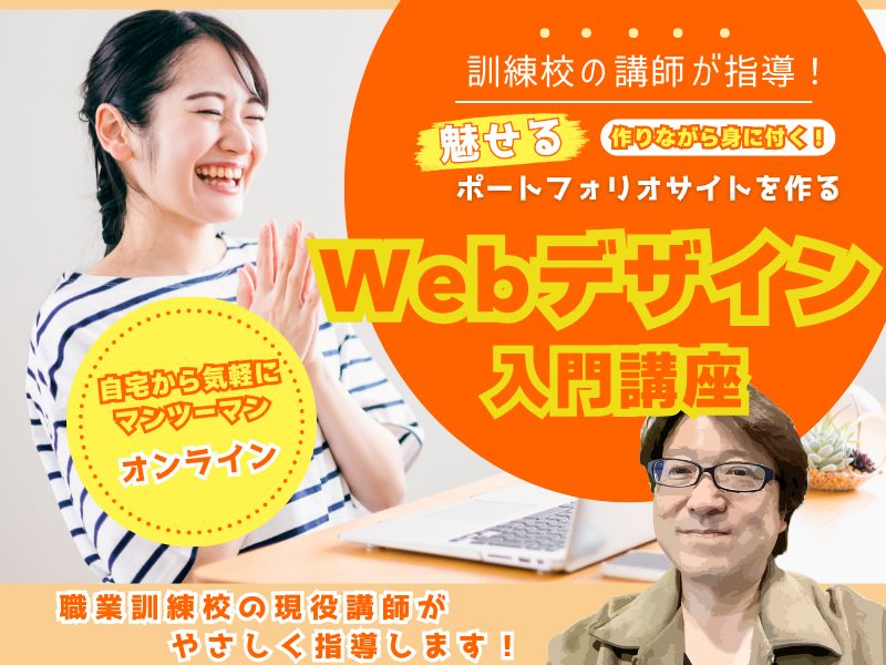 Webデザインの初心者から、Webサイトをちょっと触ったことがある方、Webデザインの基礎を学び直したい方、コーディングの基礎を身につけたい方、自分でポートフォリオサイトを作りたい方にもオススメです!